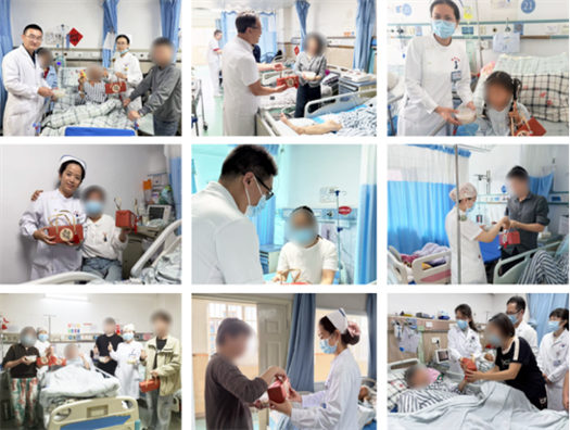 除夕当晚,在完成查房、治疗、换药等常规诊疗工作之余,医护人员走进各个病房,为留院患者送上糖果和新春祝福,缓解他们的思乡之情。科主任带领团队,带着福字、春联和热腾腾的饺子,逐一慰问住院患者,细致询问恢复情况,叮嘱安心治疗。一句句问候、一份份心意,让无法回家过年的患者感受到家一般的温暖,在坚守中传递医者温度,在团圆时刻守护生命安康。