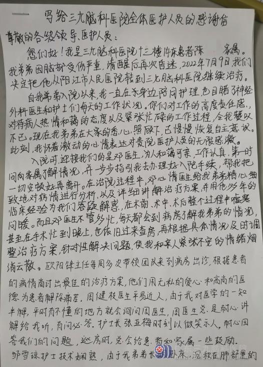 神经外十科感谢信