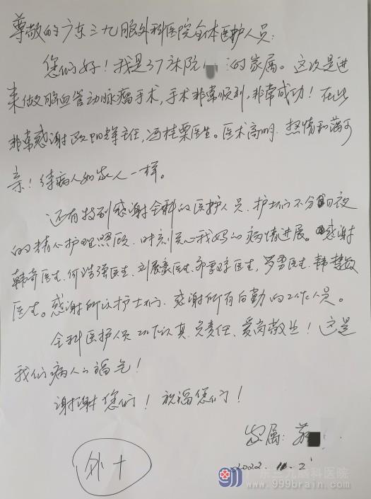 神经外十科感谢信