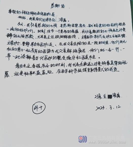 神经外十科感谢信