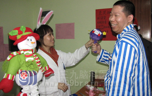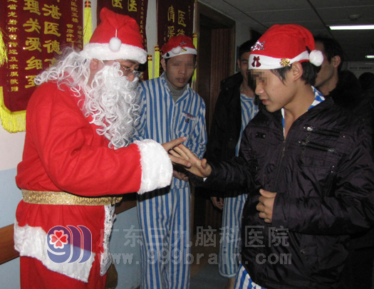 12月22日下午,心理科更是来了一位身穿大红外套、戴着花白胡子、提着一大袋子,穿梭于各病房间间不时于病友们猜猜拳,给病友们奉上惊喜礼品的“圣诞老人”……www.999brain.com