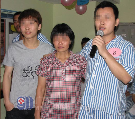 8号参赛选手——23岁的程先生以一首动情的《不浪漫罪名》赢得热烈掌声。在表演中母亲与哥哥激动地上台与程先生拥抱,母亲称:我小孩患“精神分裂症”5年了,5年前在外面打工时就开始发病,经常凭空听到死去的人与自己说话,看到宿舍有鬼、有神台,还无故用头去撞墙,跑到外面就不回家了,回到家也感到很害怕。看到他那么痛苦的,我的心真的很痛,可自己苦只有自己知道,作为母亲最大的心愿是找到一家能治好他的病的医院。听邻居说,广东三九脑科医院可以治疗这个病,我们抱着希望来到了这个医院,经过一个多星期的治疗,我小孩好多了,能站在这个舞台上表演,我感到很惊喜,谢谢广东三九脑科医院心理科的医生和护士们,是你们让我小孩重返社会,感谢您们!”母亲感人的话语打动了现场的每一个人。www.999brain.com