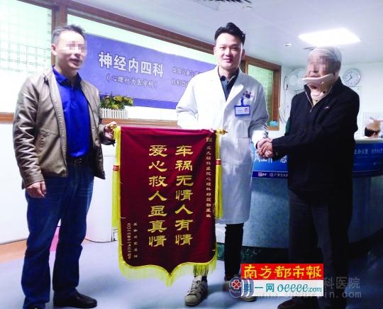 “车祸无情人有情,爱心救人显真情”,在郑霖勃的办公室里,悬挂着一面簇新的锦旗。这是伤者脱离危险基本康复后,和家人专程送到三九脑科医院的。