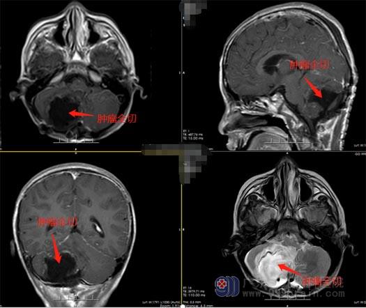广东三九脑科医院鲁明副院长了解完小文的情况后也意识到事情不简单,立即安排小文进行了详细的检查,王国良主任带领外五科的专家团队进行了讨论,最后一致认为手术是最佳治疗方案,而且达到了刻不容缓的地步。在得到家属同意后,给小文实施了右侧小脑占位切除术,显微镜下全切肿瘤,手术顺利结束。