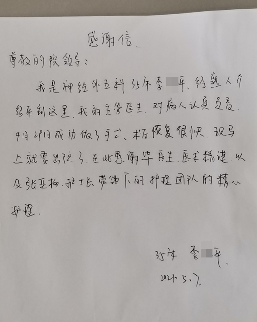 神经外五科感谢信