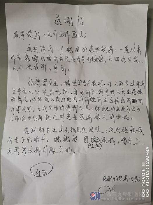 神经外五科感谢信