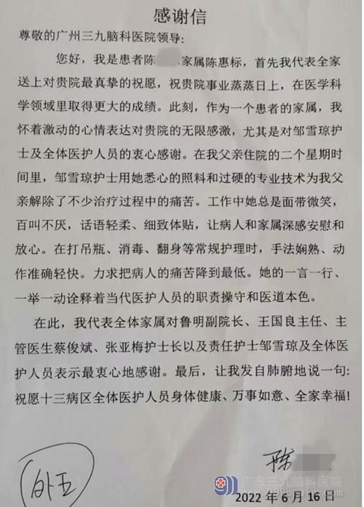 神经外五科感谢信