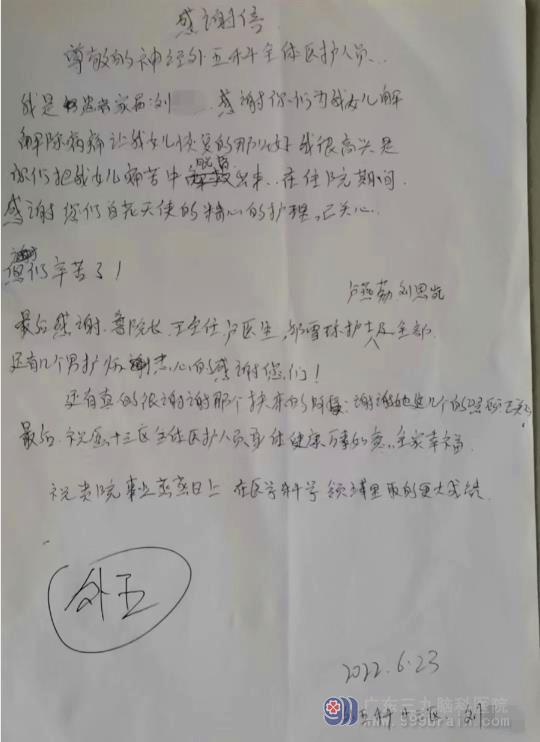 神经外五科感谢信