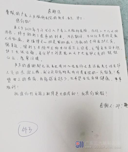 神经外五科感谢信