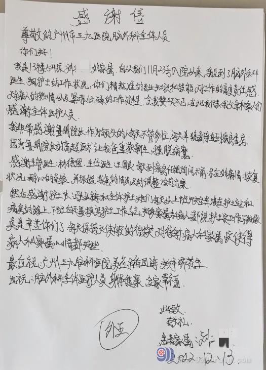 神经外五科感谢信