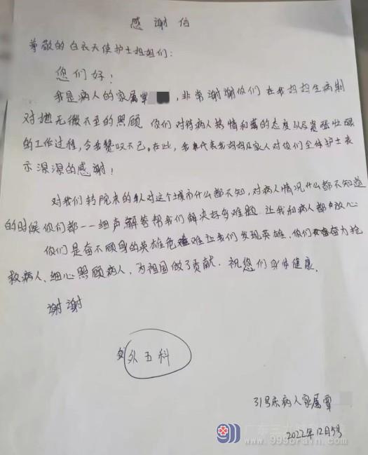 神经外五科感谢信