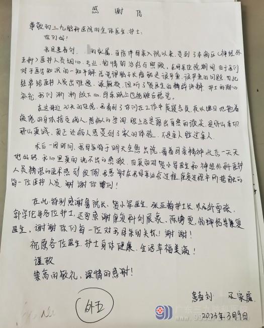 神经外五科感谢信