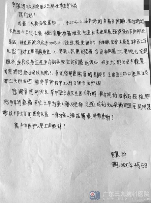 神经外五科感谢信