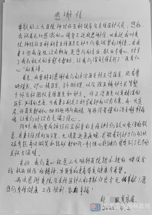 神经外五科感谢信