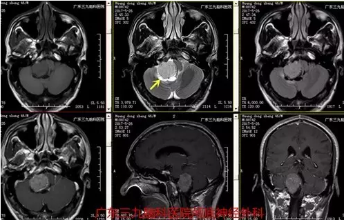 黄先生,46岁,2月前无明显诱因出现头痛,到广东三九脑科医院就诊治疗;入院完善了术前相关检查,于几日后接受“右侧桥小脑角及枕骨区大孔占位性病变切除术”,术程顺利,术中肿瘤全切,术后恢复良好。