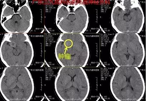 神经外科张良主任接待力李女士。在详细了解病情后,医生建议她先做头部检查,待结果回报后再做判断。结果显示:右侧鞍旁偏上方团块状占位。通过检查结果及之前李女士自己叙述的病症情况,确诊为颅内占位。