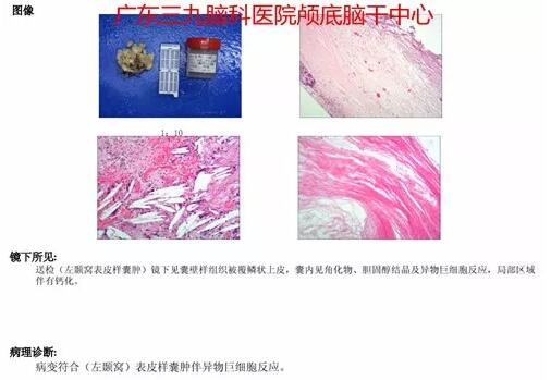 手术显微镜下,由张良主任主刀成功实施“左侧颞底占位性病变切除术”,术程顺利,术后病理报告示:(左颞窝)表皮样囊肿伴异物巨细胞反应。