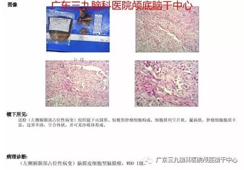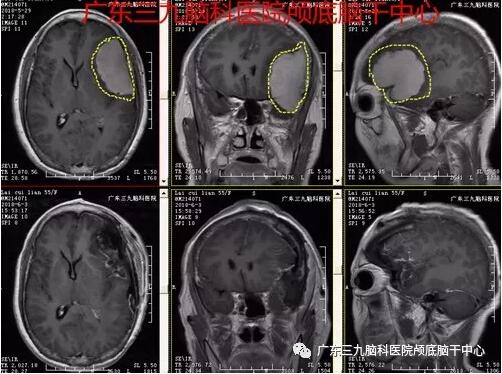 3.肿瘤长入脑实质内,硬脑膜根部很小,脑内结节很大,血管供应来源于脑内。这种肿瘤手术时要注意保护脑组织。