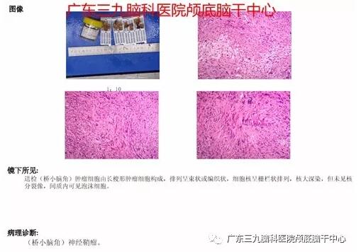 完善相关检查后,由张良主任主刀行“右侧桥小脑角占位性病变切除术”,术程顺利,术后病理报告示:(桥小脑角)听神经神经鞘瘤。