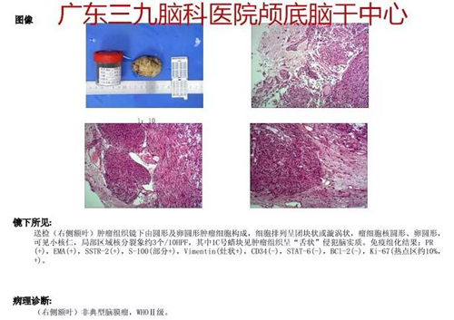 图4:术后病理:非典型脑膜瘤脑膜瘤WHOⅡ级