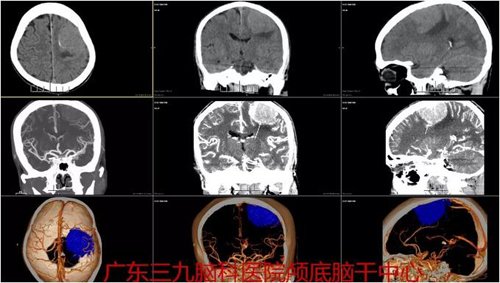 图1:术前CTA示左侧顶部占位性病变内示多发小血管影