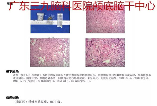 图4:术后病理示(窦汇区)纤维型脑膜瘤WHOⅠ级