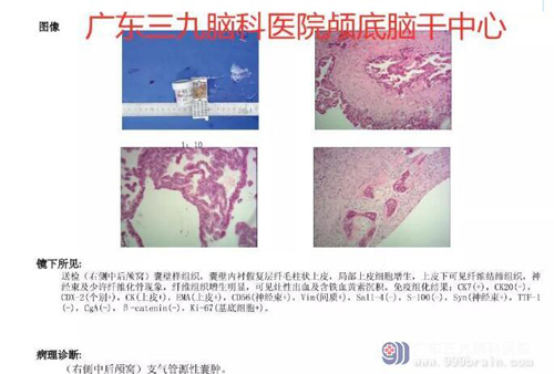 近日,一名38岁女子黎某因右侧面部麻木2年,右耳鸣听力下降6月余,右侧面瘫20余天在广东三九脑科医院就诊时被医生发现在其右侧中后颅窝占位性病变,而手术后病理检查确定为支气管源性囊肿。