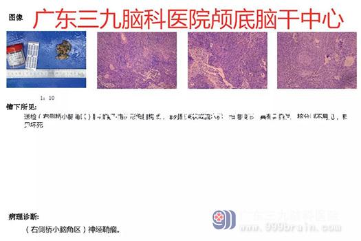 于是她也不敢大意了,立即去医院检查,经头部CT扫描发现,右侧桥小脑角区占位性病变,考虑听神经瘤可能。为进一步治疗,转院至广东三九脑科医院神经外一科。