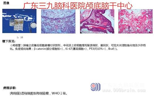 图4:病理报告示:(颅咽管)造釉细胞型颅咽管瘤,WHOⅠ级。