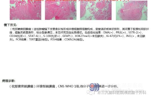 术后病理示:(枕部窦旁脑膜瘤)纤维型脑膜瘤。
