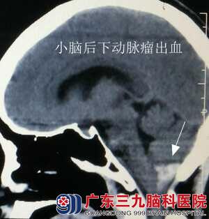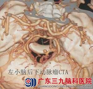 患者蒙女士,30岁,因突发头痛、头晕、呕吐3天转入广东三九脑科医院治疗。外院头颅CT提示:脑室出血。诊断:1.蛛网膜下腔出血、脑室出血2.烟雾病?3.动脉瘤?入院后迅速安排头部CTA检查、其它相关检查及对症治疗。头部CTA提示:左侧小脑后下动脉瘤。根据结果排除了烟雾病。病人在局麻下行全脑血管造影术加动脉瘤栓塞术。术后复查CT显示头部的出血已经吸收,动脉栓塞成功。出院时病人神志清楚、四肢活动自如,无头痛、头晕、呕吐等不适。