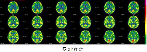 入院后检查:血常规、肝肾功能、离子、凝血、传染八项结果正常。心电图、腹部彩超、心脏彩超、胸片未见异常。韦氏全量表83,言语83,操作87,记忆86。头颅CT结果示:左侧顶枕及侧脑室周围多发钙化,左侧顶枕为著。头颅MR结果示:大脑皮层多发异常信号,考虑结节性硬化(图1)。视频脑电图示:异常脑电图Ⅲ(清醒/睡眠),间歇期:癫痫样放电,弥漫性,双后头部著;发作期:临床:强直(轴-肢带型),EEG:发作型,弥漫性,双后头部著。PET:左侧枕叶内侧面代谢明显减低(图2)。入院诊断: