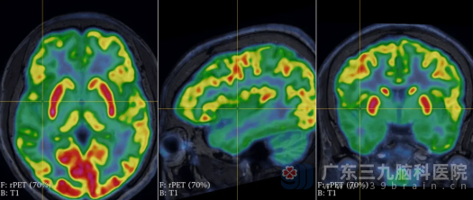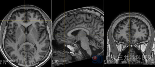 视频脑电图上机2天,提示患者发作间期右侧后头部和前头部有癫痫样放电,无减药诱发发作下共记录到10次,每次发作均有“军帽征”表情(扁嘴、痛苦表情)→床上左右滚动、口中发出无意识“啊啊”声,同步记录心电图课件心率增快(植物神经症状),随后发展为全身抽搐(GTCS),左侧肢体症状为著。MRI检查虽未发现明显异常,但PET检查提示右侧前扣带回、右侧颞-岛叶、右颞底面低代谢(图1~4)。同时,智力测试结果显示,患者的全量表智商(FIQ)为62,言语智商(VIQ)为66,操作智商(PIQ)为62,记忆商数(MQ)低于51,这表明癫痫对他的智力造成了严重影响。