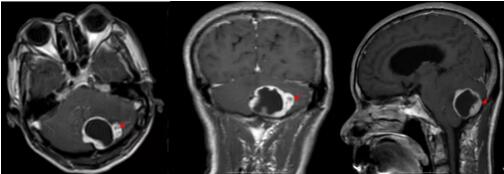 后续的检查结果也陆续完善,有着丰富临床经验的神经外科主任欧阳辉教授携团队仔细分析,考虑患者左侧小脑占位性病变为血管母细胞瘤的可能性大。