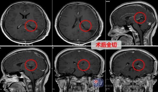 欧阳辉主任听完尹女士的描述,立即为她安排了磁共振,查看病变及周围神经组织等的情况。从MR结果分析,欧阳辉主任考虑占位病变为脑室内脑膜瘤的可能较大。家属一听十分紧张,想着脑袋长出肿瘤,是多么可怕的一件事,欧阳主任解释道:脑膜瘤并非可怕,绝大多数脑膜瘤属于良性肿瘤,根据肿瘤发生的位置不同,可出现不同的临床症状,不必过于担心。及时治疗,才是关键!