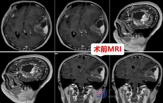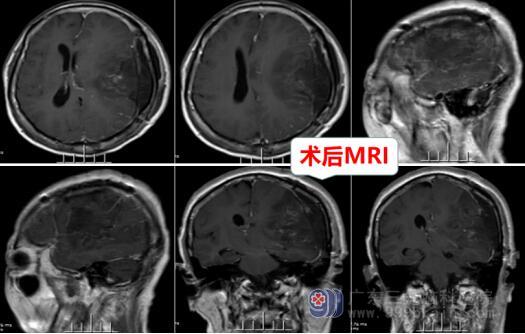 取得张女士以及其家属的同意之后,对张女士实施了“唤醒麻醉下行左侧额颞顶叶肿瘤切除术”,手术很成功,手术中利用导航定位、术中荧光等手段,在显微镜下切除肿瘤,未伤及大血管及功能区,唤醒时张女士配合良好,语言及运功功能均无异常。