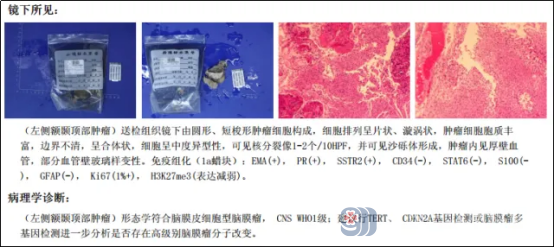 面对挑战,神经外十科团队迅速集结,深入研讨,审慎评估,制定周密手术方案。排除手术禁忌后,1月10日,一场与病魔的攻坚战打响。神经外十科学术带头人欧阳辉教授和副主任林德留带领医疗团队,凭借精湛技艺与丰富经验,如精细的工匠,在错综复杂的脑部组织间,小心分离肿瘤,全力守护正常组织,最终成功全切拳头大小的肿瘤。手术顺利完成。术后病理为脑膜皮细胞型脑膜瘤,CNS WHO1级,属于良性肿瘤。
