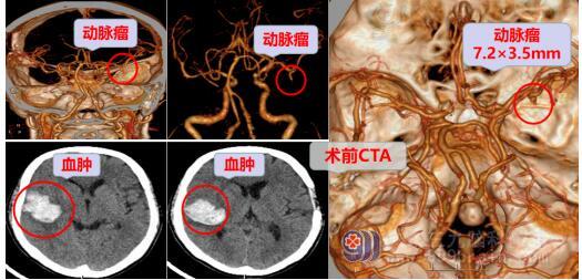 61岁的蔡叔在3天前出现头晕伴说话不清、手脚无力,到当地卫生院就诊时出现左侧肢体乏力、嘴角歪斜,急送当地医院,行头部CT检查右侧颞叶出血,CTA可疑为右侧大脑中动脉分支动脉瘤。家属为求进一步治疗,辗转来到广东三九脑科医院神经外十科。