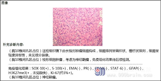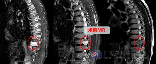 33岁的吴女士原本家庭幸福,生活美满,却因为一场突如其来的疾病打破了她原本幸福美满的生活。一个月前吴女士突然出现双下肢感觉减退,行走不稳,无头疼、头晕、恶心呕吐等症状,家属立即带她到当地医院做了脊椎磁共振检查,显示:胸10椎体水平椎管内及胸10/11椎间孔区占位,考虑神经源性肿瘤。考虑到手术的风险和安全,她和家人选择到广东三九脑科医院神经外十科住院。