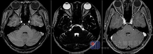 王女士10年前无明显诱因出现了左侧颜面部发作性疼痛,呈触电样,以左侧额颞部、眼眶周围为主,每两年发作性疼痛一个月左右,发作时无明显诱因,发作时间短至数分钟,长则一个小时左右,痛后可自行缓解,当时未进行进一步检查及治疗,近一个月来王女士感到左侧颜面部疼痛较前明显加重,发作频率也比之前增加了,无明显诱因头面剧痛,甚至伴有恶心呕吐等不适症状,曾到当地医院就诊,口服“卡马西平”,但服药后又明显头晕,为求进一步治疗,辗转来到广东三九脑科医院就诊,MR显示:“左侧三叉神经颅内段上方分别示一细小血管水平骑跨伴行”,门诊以“三叉神经痛”收住神经外十科。