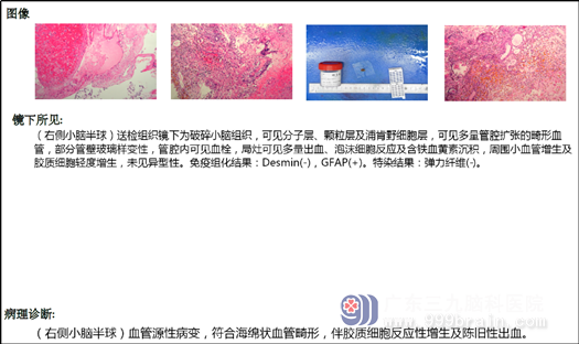 从今年5月开始,8岁10个月的小豪,反复头痛并越来越严重了,感昏昏沉沉,癫痫也更频繁的发作,一个星期就1-2次小发作,这可急坏了他的爸爸妈妈,无奈小豪爸爸妈妈带着小豪换到了广州另外一家医院,另外的医院建议小豪做个头部MR,不做不知道,一做这可吓坏小豪的父母了:小脑半球出血?,焦急万分且万般无奈的小豪妈妈,听到亲戚的建议立即带着小豪驱车赶来了广州,他们慕名来到了专业的脑科医院—广东三九脑科医院,神经外十科。小豪妈妈一直很紧张跟焦虑,她不知道在这里能否找到救她儿子的人。经过全面检查,收治小孩的恰是他的老乡—神经外十科的冯桂栗医生。经过一系列的检查,小孩的头颅CT示:“右侧小脑半球出血,考虑血管瘤(畸形)出血?”,通过阅片,冯医生惊奇的发现小豪脑袋里面长了一颗肿瘤(海绵状血管瘤),初步诊断为:1.右小脑海绵状血管瘤(畸形)伴蛛网膜下腔出血,而这颗肿瘤如果再长大、再出血就可能会要了小孩的命,而且更不巧的是小豪心脏检查也有问题,窦性心动过缓,异常心电图。外十科欧阳辉主任查房指示:24小时EEG动态观察后,再决定下一步治疗,所幸结果出来小豪的动态心电和超声心动图并没有什么大碍。