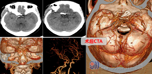 成阿姨的家属告知医生,成阿姨发病时正是出门工作,在炎炎烈日下,突发头痛,为全头部剧烈爆炸样,伴有频繁呕吐。成阿姨的同伴当时以为阿姨是急性中暑(热射病),很快就以简单的降温方法给她降温,但之后成阿姨却没有好转且逐渐出现视物模糊,意识不清。其同伴只得紧急送她到当地人民医院,行头颅CTA检查发现:“前交通动脉动脉瘤,蛛网膜下腔出血”,这可是有生命危险的大事了,因成阿姨的危急病情需立即手术,夹闭动脉瘤,尽量避免动脉瘤第二次出血因,但当地人民医院,技术有限,只能“保守治疗”,家属救人心切,成阿姨迅速被家人送到广东三九脑科医院求治。