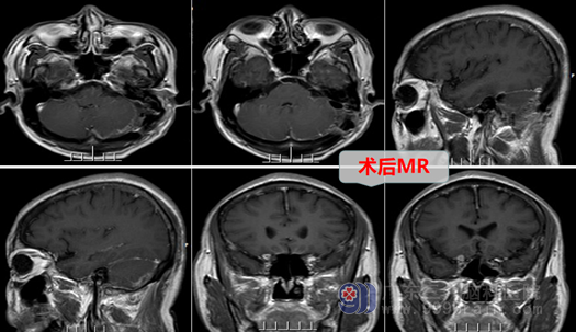 外十科团队对何大叔制定了严密的手术方案:双镜(显微镜及神经内镜)结合及神经电生理监测下前庭神经鞘瘤切除术。主管医生向何大叔及其家属讲解病情后取得了手术同意,手术当日由外十科主任欧阳辉教授主刀,在全麻下为何大叔进行精细的左侧桥小脑角占位性病变切除术,整个手术过程顺利,肿瘤被全部切除,患者的面神经、耳蜗神经都保存良好,后组颅神经、三叉神经、脑干等也未受到任何损伤,术后的何大叔恢复良好:没有面瘫,没有出现吞咽困难等。