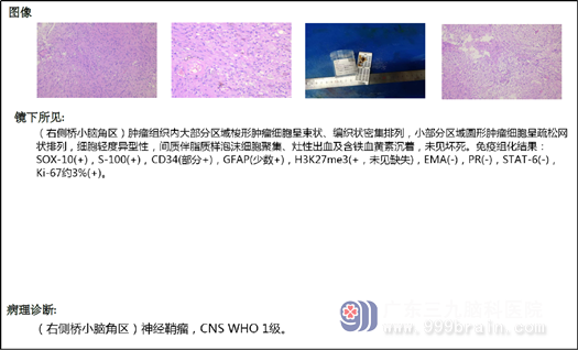 两年前,叶阿姨的听力突然下降,自认为是年老耳背,毕竟六十五岁,包括她的子女们并没有引起注意,认为听力下降完全属于正常情况,再者叶阿姨没有出现其他不舒服,所以大家都没有放在心上,也就没有进行相关的检查和治疗。慢慢地,叶阿姨也适应了听力不好的情况,因为对日常生活没大的影响,就这样过了两年。 直到近期,叶阿姨开始偶有头痛症状,刚开始叶阿姨以为自己是因为没有休息好导致的,所有就加强休息,但是仍不见头痛好转,反而加重了。叶阿姨自己找不到原因,就和子女们说着自己的情况。子女们也不确定是怎么回事,觉得平时身体也健康,既然说出不舒服,肯定是忍受不了,所以他们带着叶阿姨去当地医院就诊。经当地医院头颅磁共振检查,结果示:右侧桥小脑角区占位性病变,考虑听神经鞘瘤。当时医生建议手术治疗,但考虑桥小脑角区神经多且复杂,便建议家属去广州专科医院治疗。为了进一步治疗,叶阿姨的子女们在经过多方打听,慕名找到广东三九脑科医院神经外十科主任欧阳辉教授。