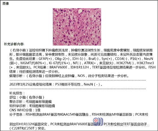 看着病倒在床上的儿子,踌躇了许久,小辉父母商量后,决定直面困境。神经外十科手术团队仔细查看患者影像检查,经过术前讨论,制定了慎密的手术方案,在全麻下行右侧后颅窝开颅行小脑肿瘤切除术。手术过程顺利,一举两得:医生不仅切除了肿瘤,又没有影响到患儿的正常功能,肿瘤病理结果为低级别胶质瘤。