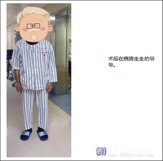 经过医生与家属沟通解释到:“全麻成功,取仰卧位,患者头部右转,纵向小切口,颅骨钻孔;硬脑膜形切开后,见暗红色血液湧出;以生理盐水进行反复冲洗血肿腔,直至灌洗液清亮,留置术腔引流管,手术结束。”外十科行“左侧额颞顶部慢性硬膜下血肿钻孔引流术”,手术进行得非常顺利,术后的容爷爷恢复顺利,也没有出现后遗症,还能自己走路散步了。