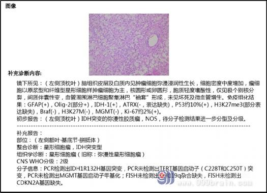 我院神经外十科主任欧阳辉教授接诊患者后。详细询问其病史,结合患者颅脑MR 结果,初步确定为低级胶质瘤,欧阳辉教授带领团队进行了详细术前讨论与评估。经多方因素综合考虑,最终确定了手术方案。向家属明确告知手术必要性和风险,获得充分理解并签字同意后,7月14日,送手术室全麻下行左侧顶枕叶胶质瘤切除术+硬脑膜修补+颅骨成形术”,手术顺利,术后病理结果提示为弥漫性胶质瘤,WHO分级:2级。低级别胶质瘤常以癫痫发病,林叔手术后再也没有发作癫痫。
