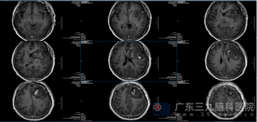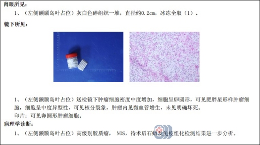我院神经外十科欧阳辉教授细致阅片后,向家属清晰说明病情:患者左侧额颞岛叶存在大小约54mm×67mm×57mm的肿瘤,左侧额叶部分脑回肿胀,疑似伴脑疝形成,病情危急。结合患者的症状表现与影像学检查结果,科室为卢阿姨完善各项术前相关检查,随后经神经外十科团队集体研讨,明确诊断为左侧额岛叶高级别胶质瘤,制定了精准的手术治疗方案。