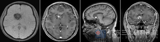 检查结果让所有人倒吸一口凉气:头颅CTA及MR提示,凌某右侧基底节-胼胝体区存在高密度灶,考虑静脉畸形伴出血、钙化,海绵状血管瘤可能。虽经对症治疗症状暂时缓解,但病灶如同一颗埋藏在脑深部的“不定时炸弹”,随时可能再次破裂出血,甚至危及生命。为寻求根治,凌某与家人慕名来到广东三九脑科医院神经外十科。