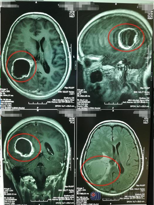 58岁的李阿姨半个月前出现了头痛症状,偶尔还会呕吐,平素体健的她以为是睡眠不好造成的,也没太在意。一个星期后,李阿姨的头痛症状一直不见缓解,家人带着她在到附近医院治疗,几天输液后,头痛反而越来越严重;进一步的脑部MRI检查提示:右侧颞顶叶占位性变。医生说,病灶有鸡蛋大小,必须手术治疗,建议转上级医院。